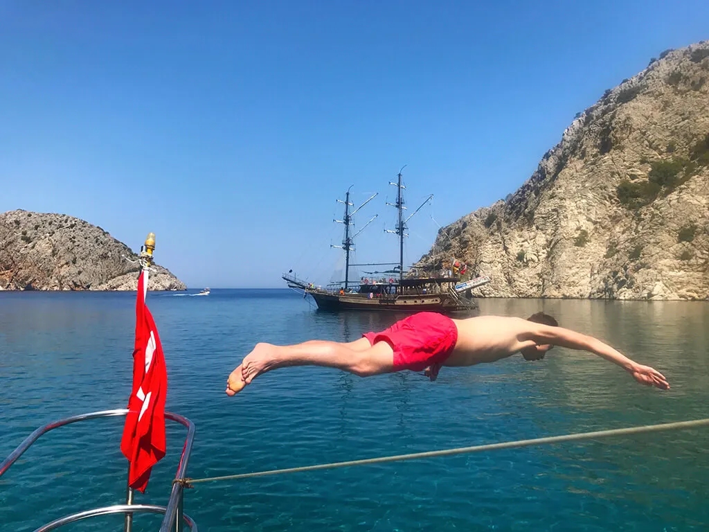 After breakfast it's all aboard onto our boat where we delight in a full day sailing on the Mediterranean coast visiting beautiful bays, swimming in crystal clear blue waters and enjoying our freshly prepared on board lunch.This is really one of the best areas in Turkey for boat trips with stunning coastline and hidden bays. Nothing to do, just sit back and relax your mind and body.