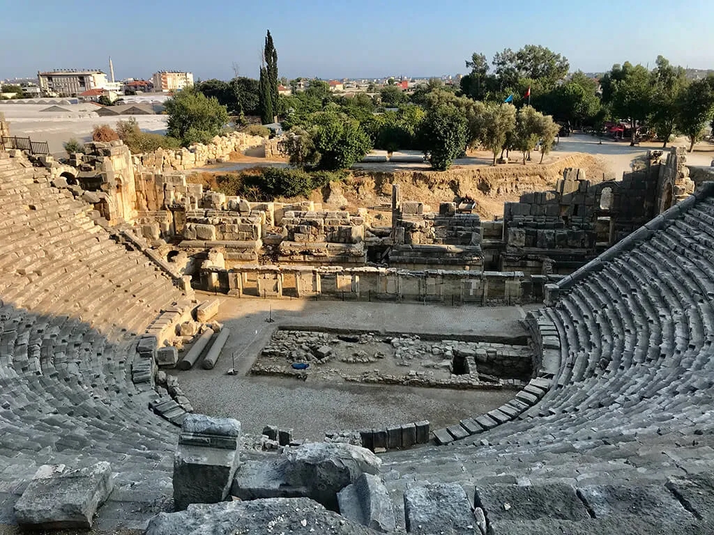 Collection from Antalya airport or your hotel/home in the morning. We drive through Antalya and make a small break in the touristic town of Kemer visiting the Marina bay. Continuing on the mountain coastline to Phaselis, an ancient city situated on a peninsula surrounded by three small, perfect bays within the beautiful Olympos Beydaglari national park. In Roman times this was an important port town and here we will spend some time walking along the Harbour Way passing by the sites of the Roman baths, the Agora and a small Roman theatre. If you want to take a swim here there is time for a small bath in one of the beautiful bays.